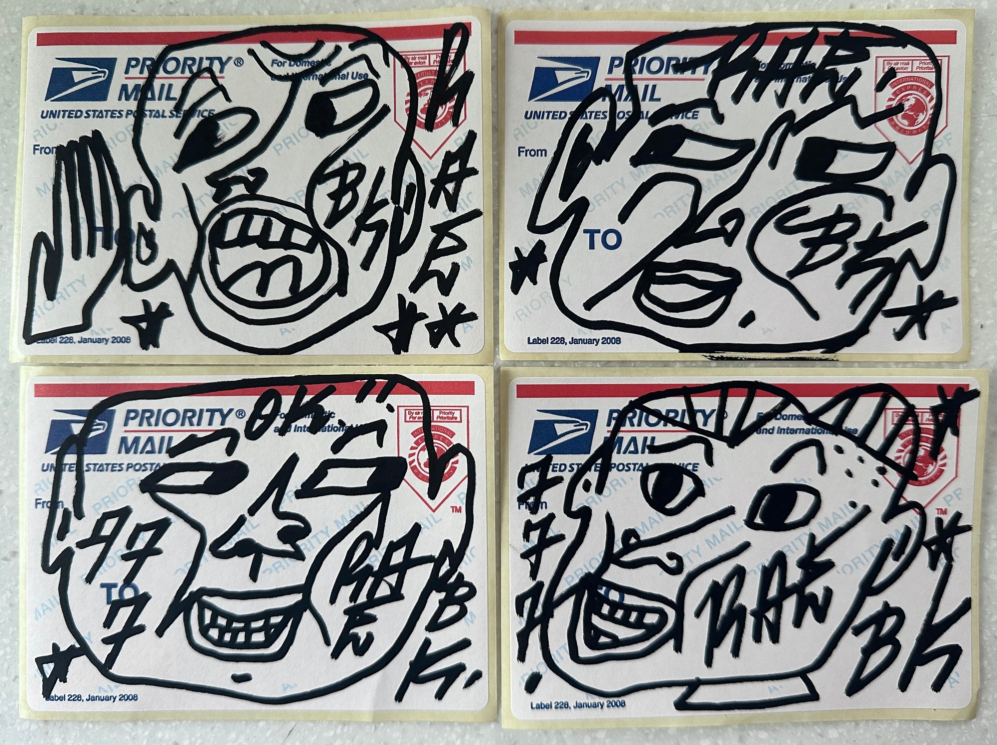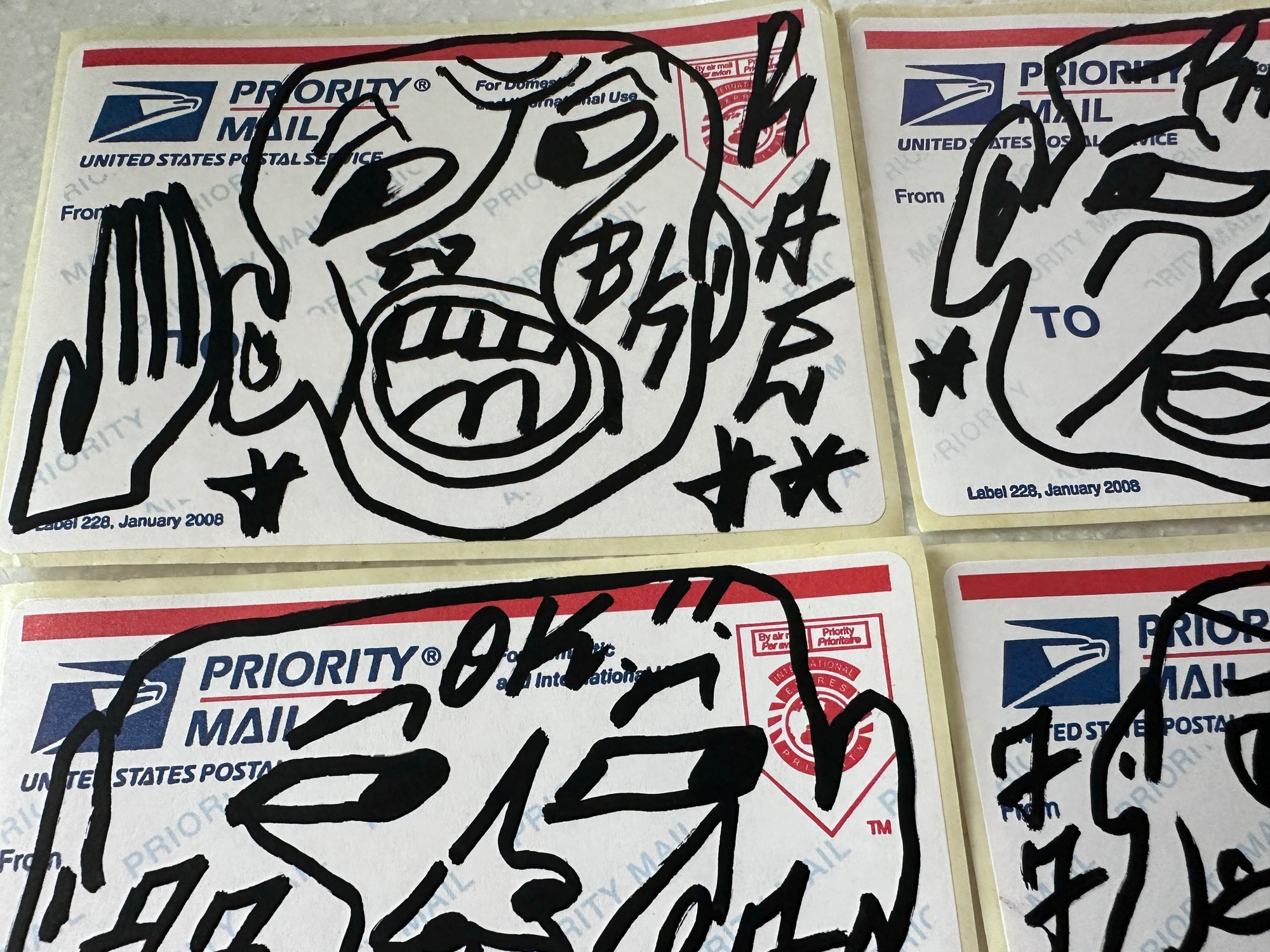Set of 4 - 228 LABELS - Original Artwork, Black Acrylic Ink