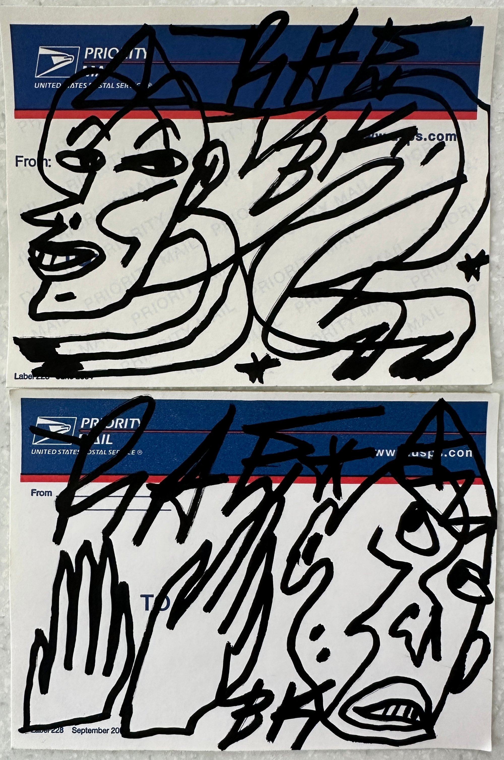 Set of 2 - 228 LABELS - Original Artwork, Black Acrylic Ink