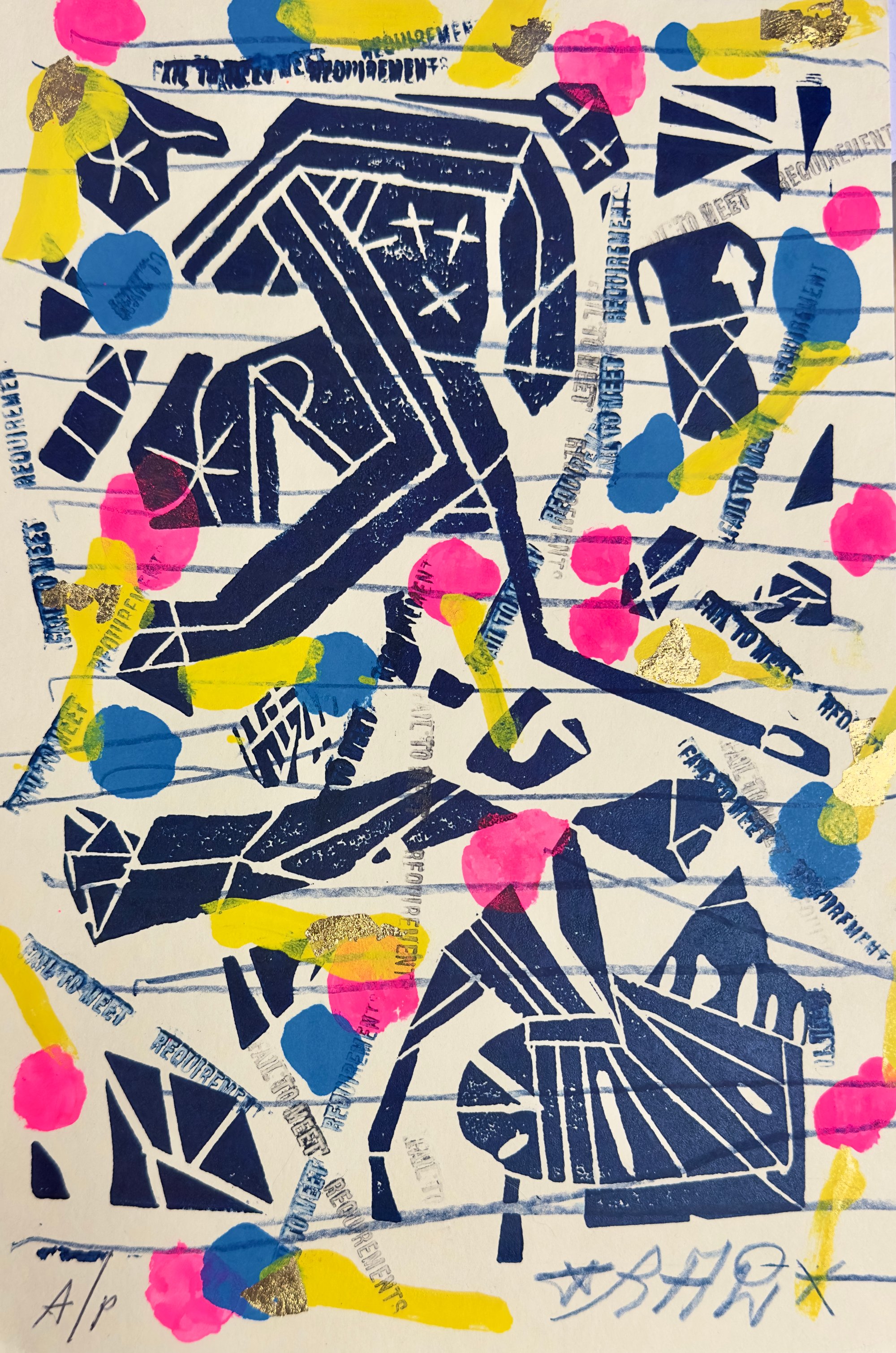 Linocut, Oil-Based Paint, Gold Leaf, Ink on Archival Paper Each one hand-done • Signed by the Artist 1 of 2 A/P’s • (Edition numbers sold out)